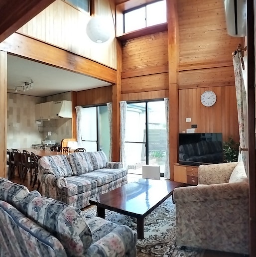 名古屋駅や長島リゾートからバス一本。1日1組限定の1軒貸切民泊。温泉付きです。 駐車3台まで可能。連泊・多人数で、よりお安く泊まれます。 ベットは高級シモンズで8ベット‼︎他に敷布団も用意できます。 ベビーカーやベビー石鹸、ちょっとしたおもちゃもあり、お子様連れでも安心してお泊りいただけます。 free wifi タオル、歯ブラシ、スリッパ等あります。 クロームキャストが置いてあるので、お手持ちのスマートフォンやタブレットをミラーリングして、テレビ画面でYouTubeやアマゾンプライムビデオを楽しむ事ができます。ブルーレイプレーヤーもあります。 大きな貸切のお風呂ですので、ご家族やお友達と一緒に入る事ができます。長島温泉をそのまま引湯しています。 シングル8ベットのため、小さなダブルベットで2人寝る必要はありません。3世代旅行でも楽しめます☆ 湾岸長島インター、長島温泉・長島スパーランド、なばなの里までお車で5分。東京大阪間の中継地にもぴったり☆★ 一軒丸ごとお貸し致します。 近くにコンビニや、バス停があります。