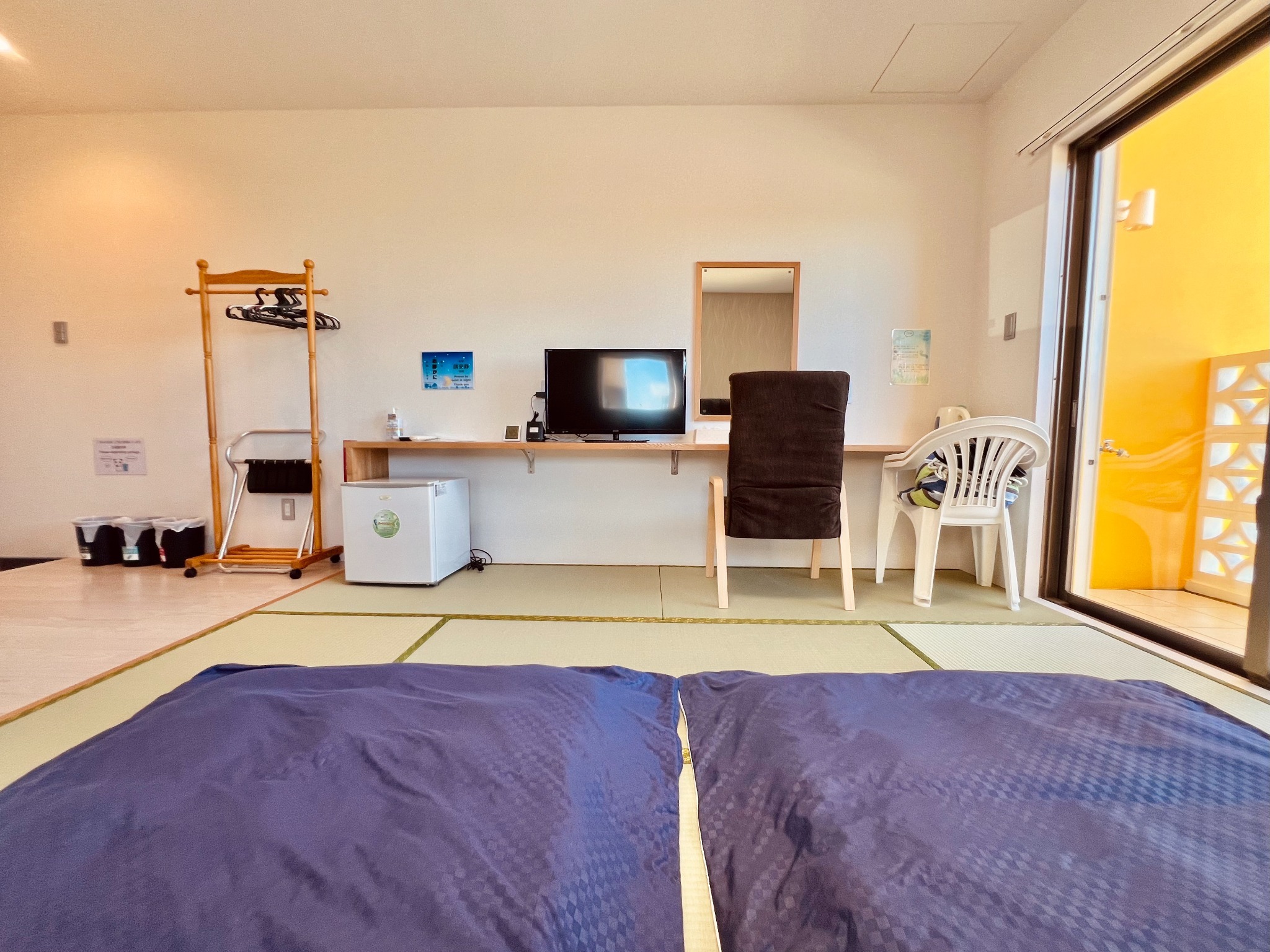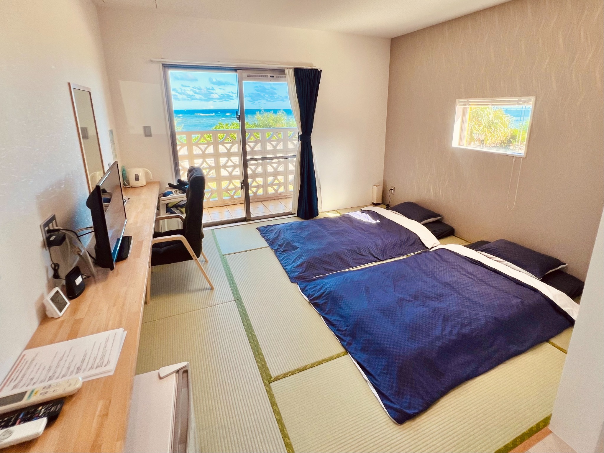 2020年10月新築オープン。海まで10秒! 1階ももちろん180度のオーシャンビュー! 2階へは階段のみですので上り下りが苦手な方や、小さなお子様連れの方等にお勧めです。 無料のコーヒーやお茶をご用意していますので、ただただ海を眺めながらぼーっとするのがお勧めの過ごし方です。 当ホテルは昔ながらの静かな集落にありながら、大型スーパー等へは車で2分、ドン・キホーテまでは1分と、市街地にも近く、滞在に大変便利です。徒歩5分圏内には美味しい居酒屋が4件あります。