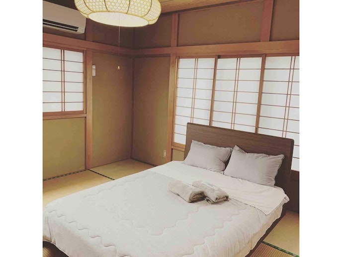 熱海市のとなり、有数の温泉街、湯河原町にある、ご家族やご親戚と宿泊できる一軒家です。元は企業の保養施設でした。和風の庭と季節の花々が咲く庭先にはBBQスペースがあります。 3(4)つのベッドルームがあり、和風のベッドルームが2つ、子供部屋は洋風で2段ベッドをご用意しております。 里山の景色、相模湾、そして夜は街明かりが美しく見えます(おそらく夏は花火も…要確認です)。 犬に限らずペットOKで、勝手口から自由に外に出れるこじんまりとしたドッグランを用意しました。