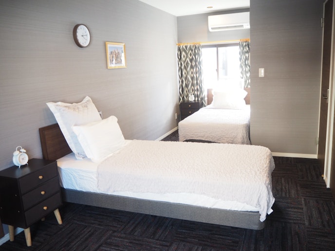 ゲストハウスボストンズは、フルリノベーション済のキレイで快適に滞在して頂ける高級志向の民泊施設です。全てのベッドはシモンズマットレス使用。キッチン、ファミリーサイズの冷蔵庫、電子レンジ、ドラム式洗濯乾燥機、調理道具有り。Wifi無料。まるで自宅にいるような快適さをゲストの皆さまに実感して頂ける様、努力しております。宿泊者の方々には、我が家にいる様な『家』としてのくつろぎ、それでいてホテルの様な高級感を感じられる様、キッチン、調理器具、食器、冷蔵庫、電子レンジ、ドラム式洗濯乾燥機、1坪サイズのお風呂、トイレは各階に、ベッド(全てシモンズマットレス)を揃えております。一軒まるごと貸切宿泊施設です。ベッド3台、ソファーベッド1台、ソファー1台を利用して寝る場合は、1~6名様までお布団のご用意ができます。駐車場は1台分の軽専用インナーガレージがございます。 Our property is all newly renovated. Very cozy, clean and convenient to all guests. All beds are by simmons mattress.